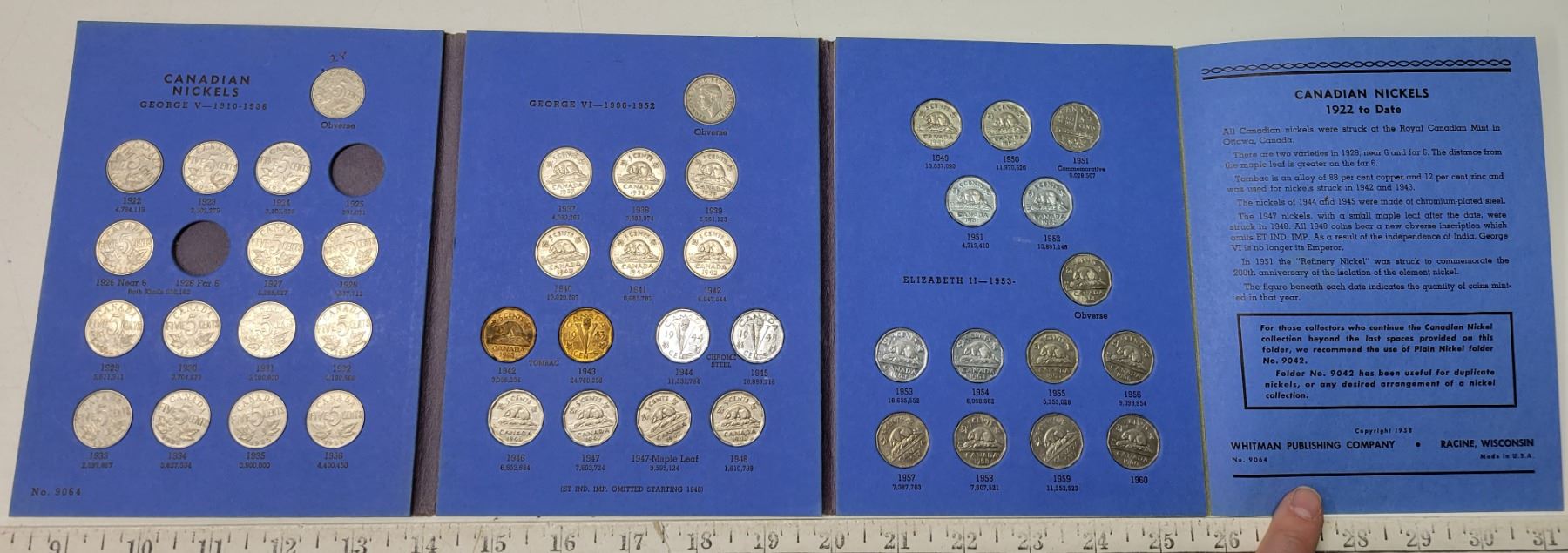 1922 - 1960 Whitman Blue Folder - Canadian Five Cent - almost complete
