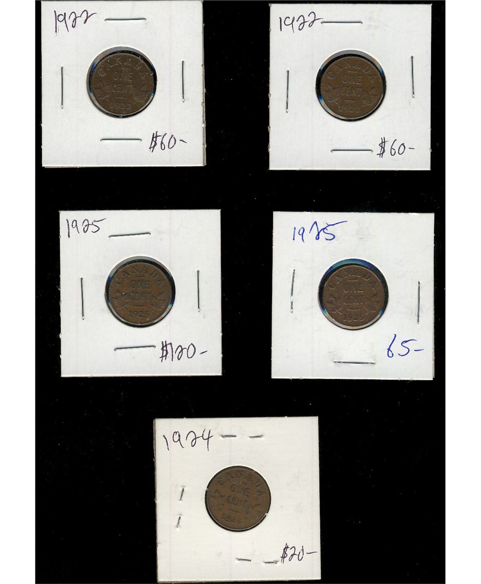 1922(2) 1¢, 1924 & 1925(2). Lot of 5 key date coins.