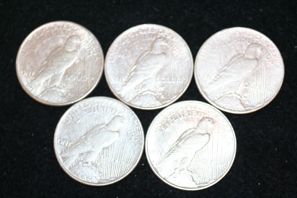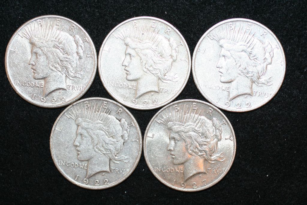 1922 (2), 1922-D (2) & 1927-D Peace $1, Lot of 5