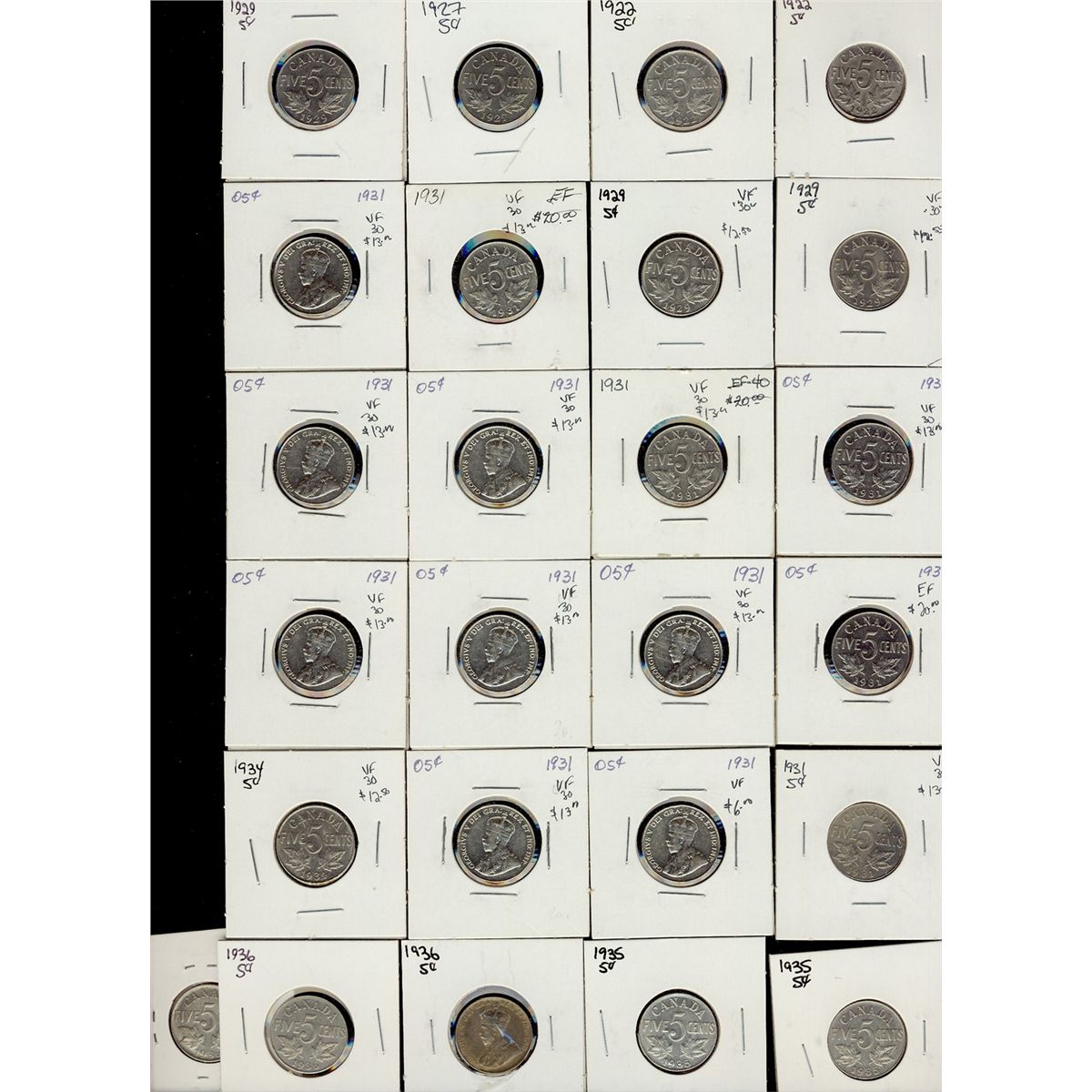 1922(2) 5¢, 1927, 1929(3), 1931(13), 1934, 1935(2) & 1936(3). Lot of 25 coins all VF to EF. Some wit