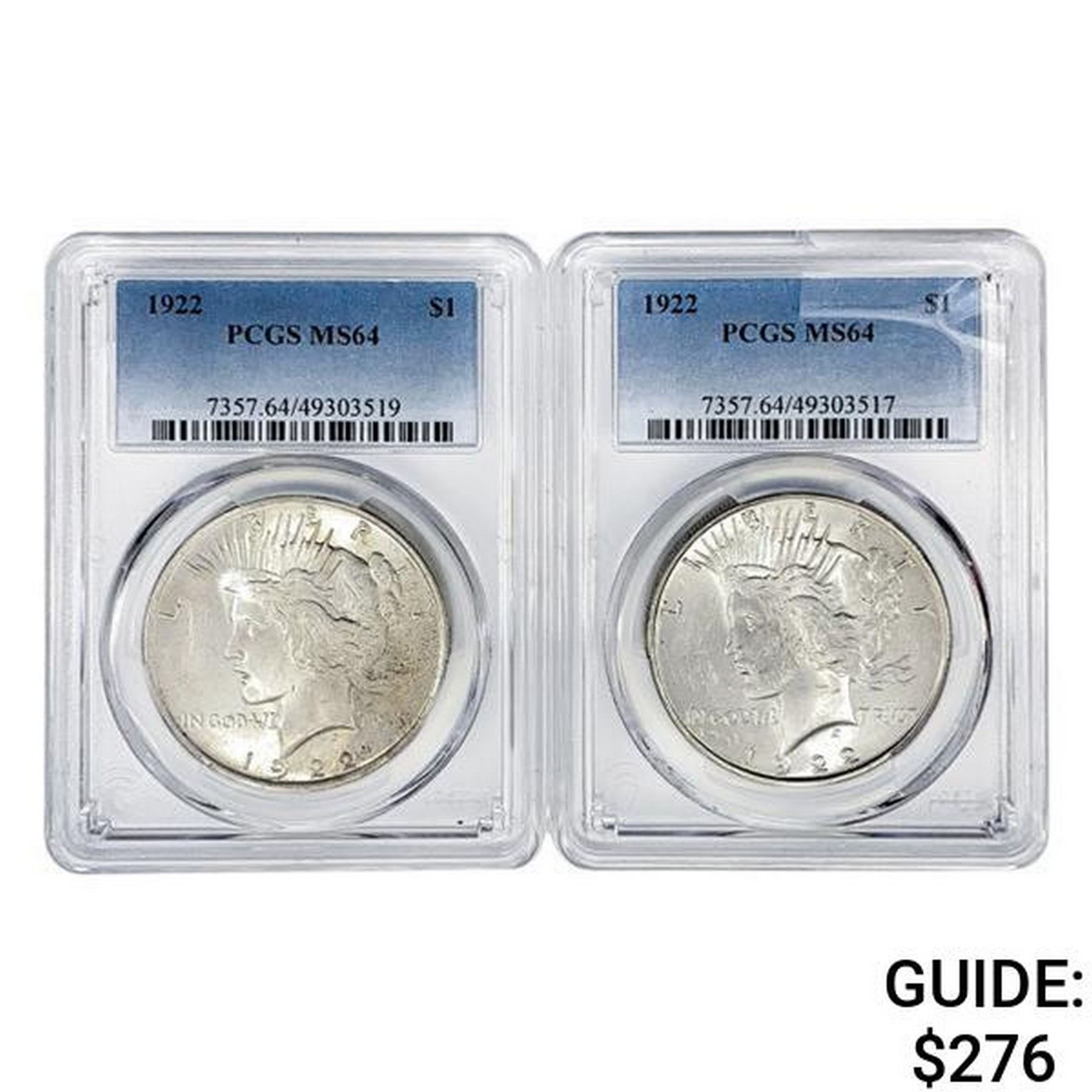 1922 [2] Silver Peace Dollar PCGS MS64