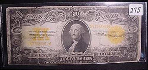 1922 $20.00 Gold Coin Certificate Note VG Dark