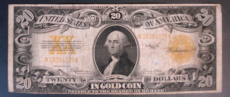 1922 $20 GOLD CERTIFICATE, NICE VF+