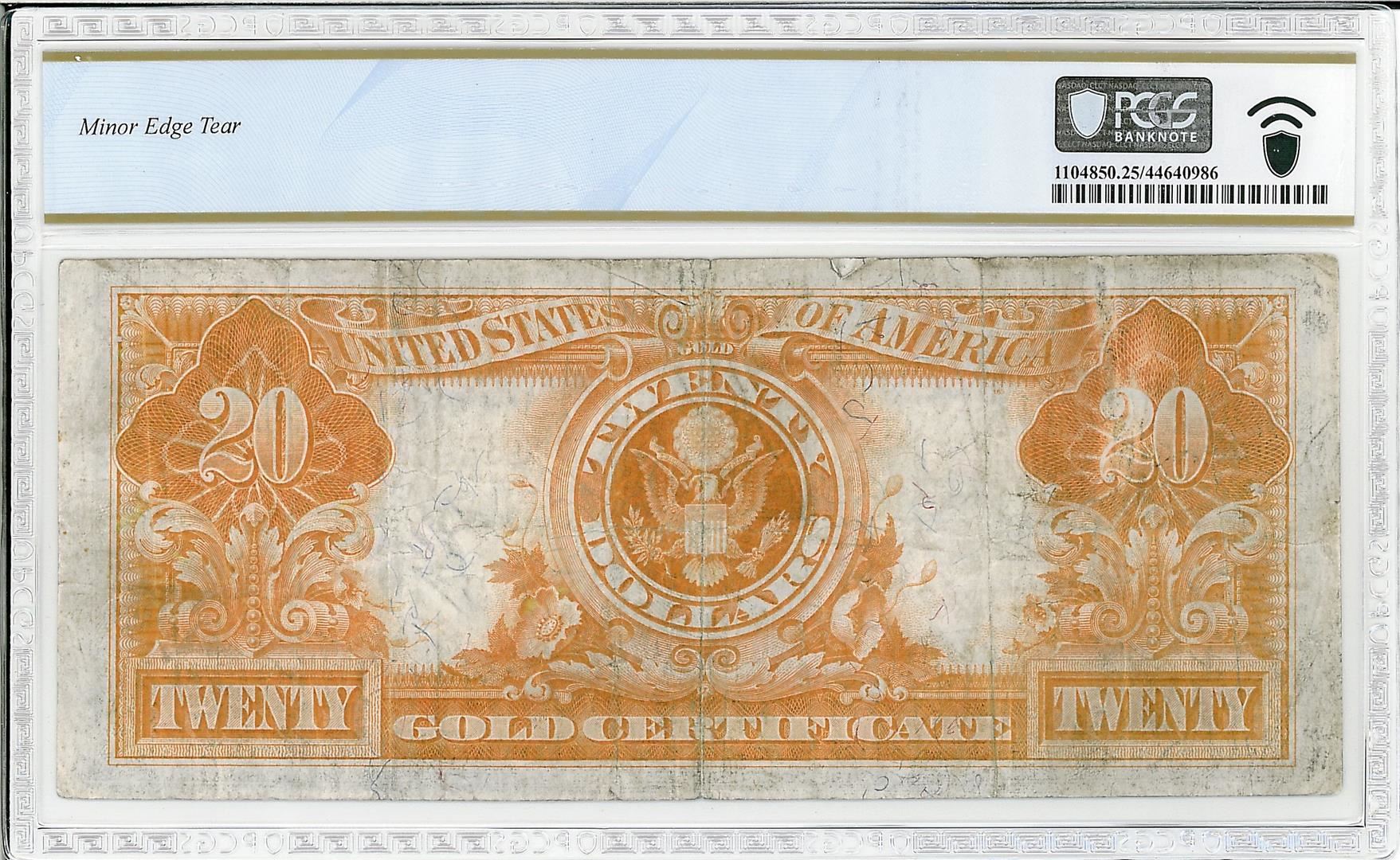 One 1922 $20 Gold Certificate Bank Note PCGS 25 Very Fine. The serial number is 79373712.