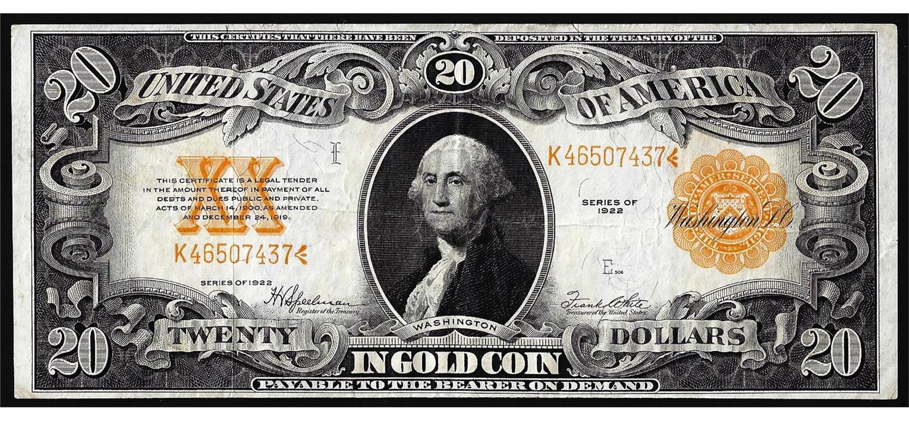 One 1922 $20 Gold Certificate Note.