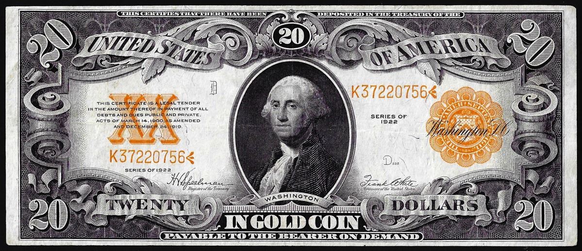 One 1922 $20 Gold Certificate Note.