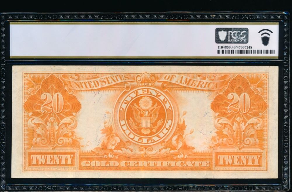 One 1922 $20 Gold Certificate PCGS 40PPQ.