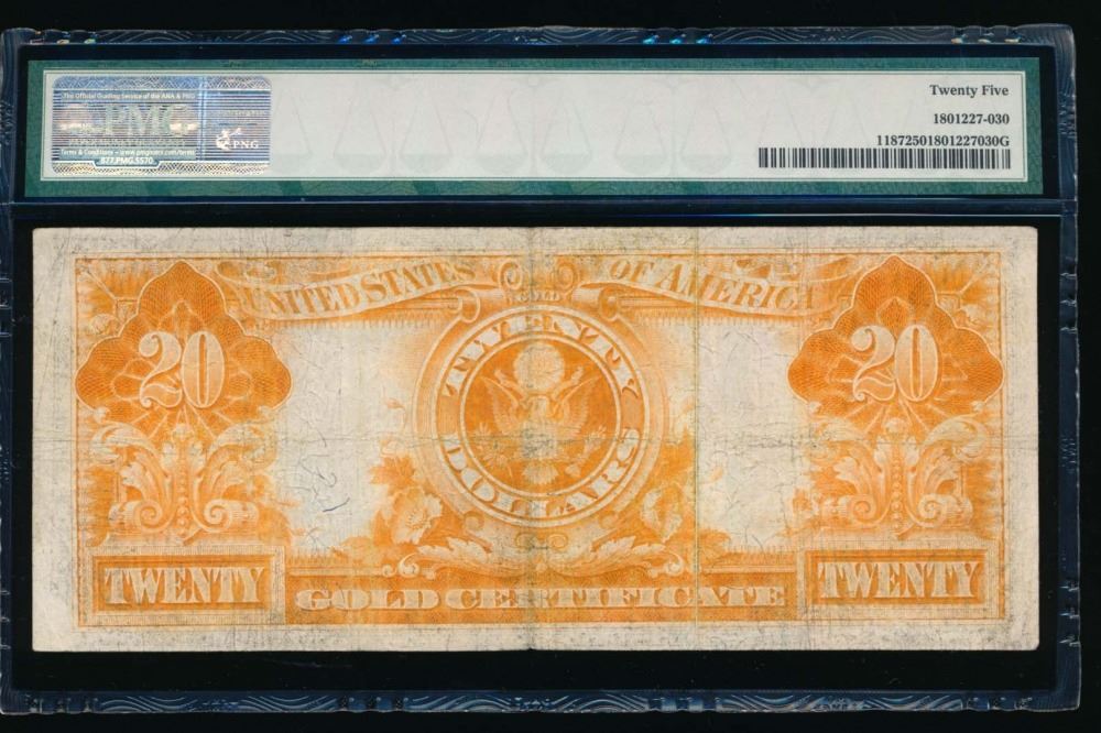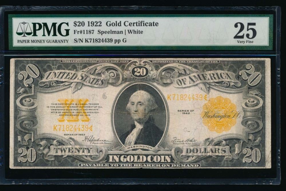 One 1922 $20 Gold Certificate PMG 25.