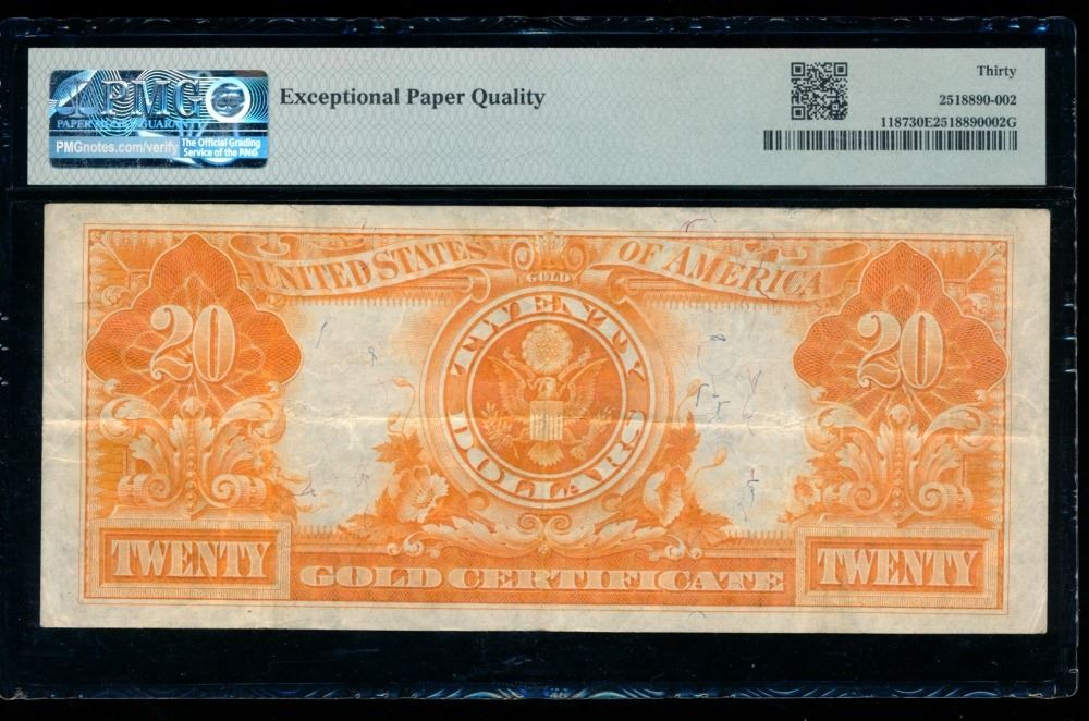 One 1922 $20 Gold Certificate PMG 30EPQ.