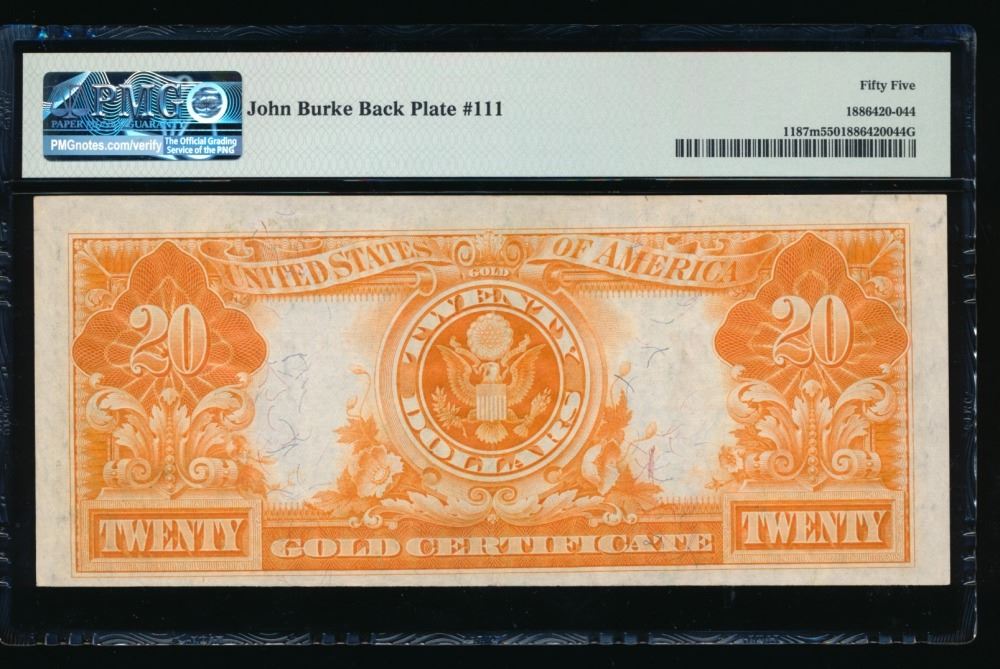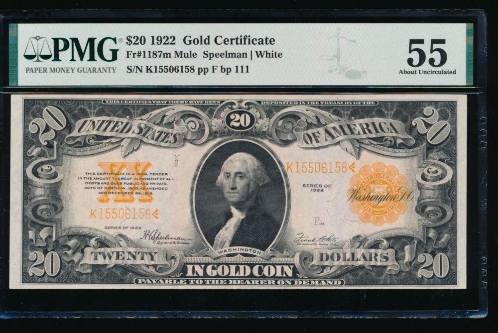 One 1922 $20 Gold Certificate PMG 55.