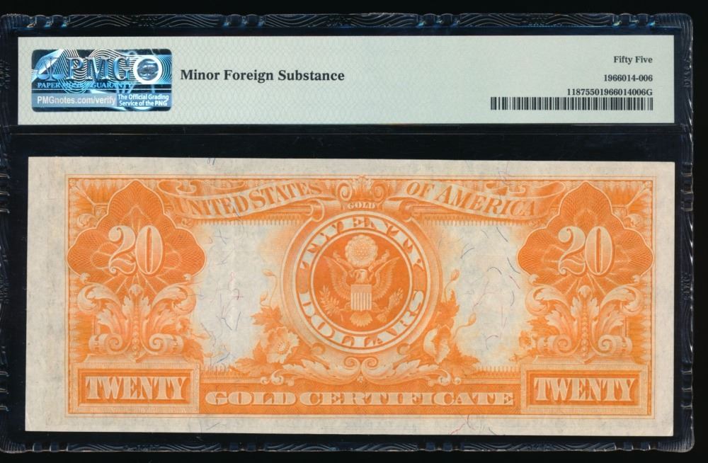 One 1922 $20 Gold Certificate PMG 55.