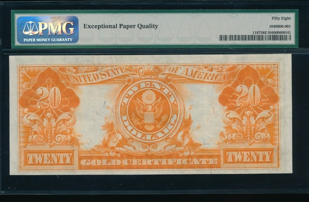 One 1922 $20 Gold Certificate PMG 58EPQ.