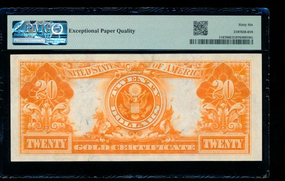 One 1922 $20 Gold Certificate PMG 66EPQ.
