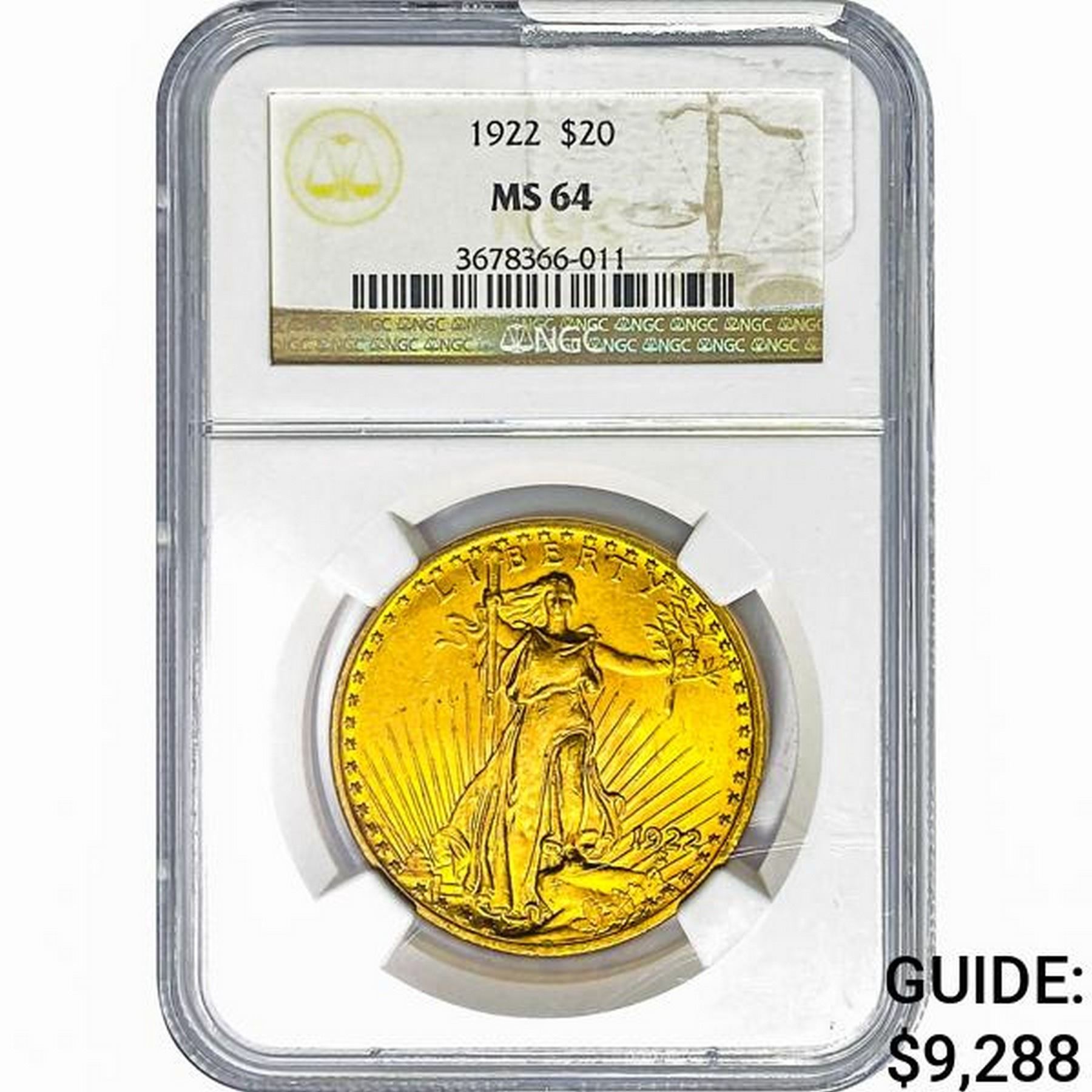 1922 $20 Gold Double Eagle NGC MS64