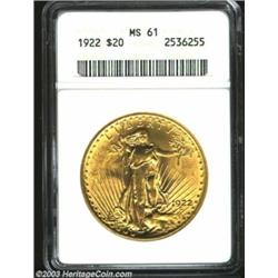 <TABLE cellSpacing=0 cellPadding=0 width="100%" bgColor=#000000 border=0><TBODY><TR><TD width="100%"><TABLE cellSpacing=1 cellPadding=3 width="100%" border=0><TBODY><TR><TD width="100%" bgColor=#79735c><FONT face=arial color=#ffffff size=3><B>Description</B> </FONT></TD></TR><TR><TD width="100%" bgColor=#ffffff><FONT face=arial size=2><B>1922 $20 MS61 ANACS.</B></I> Fully lustrous with the eye appeal of a much higher grades. One somewhat lengthy mark is disguised within the eagle's feathers on the reverse and accounts for the assigned grade. </FONT></TD></TR></TBODY></TABLE></TD></TR></TBODY></TABLE><BR><A name=PricesRealized></A><TABLE cellSpacing=0 cellPadding=0 width="100%" bgColor=#000000 border=0><TBODY><TR><TD width="100%"><TABLE cellSpacing=1 cellPadding=3 width="100%" border=0><TBODY><TR><TD width="100%" bgColor=#79735c><A name=PR><FONT face=arial color=#ffffff size=3><B>Previous Prices from Heritage Auctions</B> </FONT></A></TD></TR><TR><TD bgColor=#f6f6ed><TABLE cellSpacing=0 cellPadding=0 width="100%" border=1><TBODY><TR><TD align=middle width="33%"><B>Date</B></TD><TD align=middle width="33%"><B>Service</B></TD><TD align=middle width="33%"><B>Price</B></TD></TR><TR bgColor=whitesmoke><TD width="33%"><B>08/05/2001</B></TD><TD width="33%">PCGS</TD><TD width="33%">$333.50</TD></TR><TR bgColor=whitesmoke><TD width="33%"><B>03/18/1998</B></TD><TD width="33%">PCGS</TD><TD width="33%">$429.00</TD></TR><TR bgColor=whitesmoke><TD width="33%"><B>11/25/2002</B></TD><TD width="33%">ANACS</TD><TD width="33%">$402.50</TD></TR></TBODY></TABLE></TD></TR><TR><TD bgColor=#ffffff><FONT face=arial size=1 ?>PLEASE NOTE: All prices realized reflect the final hammer price PLUS the buyer's premium in auctions that charge a buyer's premium. Each item has a notation at the top of the listing indicating whether that lot included a buyer's premium. Example: A item that sells with a final hammer price of $100 and a 20% buyer's premium will display with a price realized of $120. All information listed is intended to be as accurate as possible, but errors are possible. Please use this guide carefully and inform us of any inaccuracies. </FONT></TD></TR></TBODY></TABLE></TD></TR></TBODY></TABLE><BR><TABLE cellSpacing=0 cellPadding=0 width="100%" bgColor=#000000 border=0><TBODY><TR><TD width="100%"><TABLE cellSpacing=1 cellPadding=3 width="100%" border=0><TBODY><TR><TD width="100%" bgColor=#79735c colSpan=6><FONT face=arial color=#ffffff size=3><B>Price Guide*</B> </FONT></TD></TR><TR bgColor=#f6f6ed><TD align=middle><B>Grade</B> </TD><TD align=middle><B>Coin World<BR>(Trends)</B> </TD><TD align=middle><B>Numismedia<BR>Retail</B> </TD><TD align=middle><B>Numismedia<BR>Wholesale</B> </TD><TD align=middle><B>Coin<BR>Universe</B> </TD><TD align=middle><B>Heritage<BR>Value Index</B> </TD></TR><TR bgColor=#ffffff><TD align=middle>60</TD><TD align=right>$525.00</TD><TD align=right>$503.00</TD><TD align=right>$419.00</TD><TD align=right>$500.00</TD><TD align=right>$383.26</TD></TR><TR style="FONT-WEIGHT: bold" bgColor=#cccfdd><TD align=middle>61</TD><TD align=right>$540.00</TD><TD align=right>$520.00</TD><TD align=right>$433.00</TD><TD align=right>$525.00</TD><TD align=right>$387.38</TD></TR><TR bgColor=#ffffff><TD align=middle>62</TD><TD align=right>$550.00</TD><TD align=right>$575.00</TD><TD align=right>$479.00</TD><TD align=right>$535.00</TD><TD align=right>$404.50</TD></TR><TR bgColor=#ffffff><TD colSpan=6><FONT size=1>*All information listed is intended to be as accurate as possible, but errors are possible. No item may be returned or refused based on this information which is provided as a service to our customers. You should contact each pricing source directly to determine the accuracy of this information. </FONT></TD></TR></TBODY></TABLE></TD></TR></TBODY></TABLE><BR><TABLE cellSpacing=0 cellPadding=0 width="100%" bgColor=#000000 border=0><TBODY><TR><TD width="100%"><TABLE cellSpacing=1 cellPadding=3 width="100%" border=0><TBODY><TR><TD width="100%" bgColor=#79735c><FONT face=arial color=#ffffff size=3><B>Population Guide</B> </FONT></TD></TR><TR bgColor=#ffffff><TD align=middle><!-- Begin Output of Population Grid--><TABLE cellSpacing=0 cellPadding=0 width="100%" border=0><TBODY><TR><TD vAlign=center><TABLE cellSpacing=0 width="100%" border=1 cellsadding="3"><TBODY><TR><TD vAlign=center><TABLE cellSpacing=0 cellPadding=3 width="100%" border=1><TBODY><TR><TD vAlign=center align=middle bgColor=#f0f1e8 colSpan=2 <CENTER><FONT face=Arial size=2><B>PCGS Pop </B></FONT><CENTER></CENTER></TD><TD vAlign=center align=middle bgColor=#f0f1e8 colSpan=2><CENTER><FONT face=Arial size=2><B>NGC Pop</B></CENTER></FONT></TD></TR><TR><TD vAlign=center><FONT face=Arial size=2>(61)</FONT> </TD><TD vAlign=center align=right><FONT face=Arial size=2>2165</FONT> </TD><TD vAlign=center><FONT face=Arial size=2>(61)</FONT> </TD><TD vAlign=center align=right><FONT face=Arial size=2>2431</FONT> </TD></TR><TR><TD vAlign=center><FONT face=Arial size=2>(>61)</FONT> </TD><TD vAlign=center align=right><FONT face=Arial size=2>15009</FONT> </TD><TD vAlign=center><FONT face=Arial size=2>(>61)</FONT> </TD><TD vAlign=center align=right><FONT face=Arial size=2>26539</FONT> </TD></TR></TBODY></TABLE></TD></TR></TBODY></TABLE></TD></TR></TBODY></TABLE><!-- End Output of Population Grid--> Important notice: Heritage usually auctions material at the rate of 200-250 lots per hour. On some occasions eBay Live bid software or the Internet may not be able to keep up with the pace of the auction. We recommend placing a realistic absentee bid now as insurance to avoid disappointment. Occasionally the auctioneer may eliminate or reject an eBay Live bid, and the auctioneer may also reopen a lot after the close of the eBay live bidding (usually because we missed an audience bid), and may reject your bid even if it shows you as the winning bidder. By bidding via eBay Live, you agree that Heritage may award the lot to another bidder at its sole discretion under