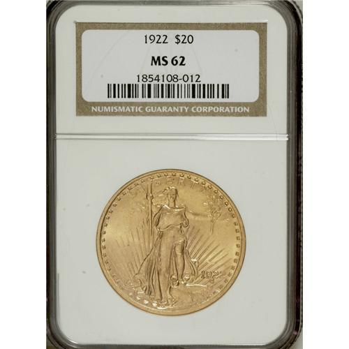 1922 $20 MS62 NGC. NGC Census: (12589/21216). PCGS