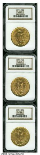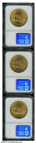 <B>1922<$20> MS63 NGC,</B></I> lustrous and sharply struck, clean for the grade; <B>1923 MS63 NGC,</B></I> peach color enriches this lustrous and lightly marked piece; and a <B>1928 MS64 NGC,</B></I> boldly struck and satiny, an unmarked reverse.