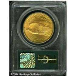 1922 $20 MS63 PCGS. Booming luster and original le <B>1922 $20 MS63 PCGS.</B></I> Booming luster and original lemon-gold color confirm the quality of this nicely struck Twenty Dollar gold piece. Each side has a small alloy spot, and the only mark of any consequence is below the T in LIBERTY. <BR><BR><B>Important notice:</B> Heritage usually auctions material at the rate of 200-250 lots per hour. On some occasions eBay Live bid software or the Internet may not be able to keep up with the pace of the auction. We recommend placing a realistic absentee bid now as insurance to avoid disappointment. Occasionally the auctioneer may eliminate or reject an eBay Live bid, and the auctioneer may also reopen a lot after the close of the eBay live bidding (usually because we missed an audience bid), and may reject your bid even if it shows you as the winning bidder. By bidding via eBay Live, you agree that Heritage may award the lot to another bidder at its sole discretion under the circumstances described above or any other reasonable circumstances. Since eBay bids are not shown to us until we open the lot on the floor, we treat those bids just like floor bids. In most cases the floor responds before the eBay bid is presented to us, due to Internet lag time, so for consistency we have made it a policy that floor bids are always considered first over tie eBay live bids. Also please note that all Heritage lots purchased through eBay Live carry a 20% Buyer's Premium. Please make sure you read the Terms and Conditions before you bid. This lot is being auctioned in conjunction with a live floor auction by Heritage Galleries & Auctioneers. All final auction and invoice information will be supplied by Heritage Galleries & Auctioneers, and all other information should be considered preliminary. Lot:7179