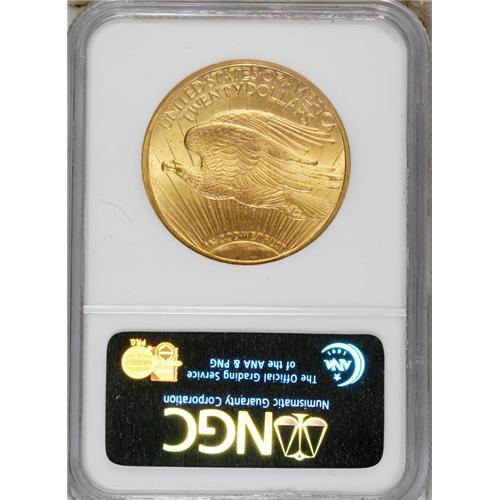 1922 $20 MS64 NGC. Frosty and highly lustrous yellow-g
