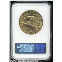 <B>1922<$20> MS64 NGC.</B></I> Sharp in strike with well blended rose-gold and orange-gold hues. Scattered alloy spots are noted on both sides. <BR><BR><B>Important notice:</B> Heritage usually auctions material at the rate of 200-250 lots per hour. On some occasions eBay Live bid software or the Internet may not be able to keep up with the pace of the auction. We recommend placing a realistic absentee bid now as insurance to avoid disappointment. Occasionally the auctioneer may eliminate or reject an eBay Live bid, and the auctioneer may also reopen a lot after the close of the eBay live bidding (usually because we missed an audience bid), and may reject your bid even if it shows you as the winning bidder. By bidding via eBay Live, you agree that Heritage may award the lot to another bidder at its sole discretion under the circumstances described above or any other reasonable circumstances. Since eBay bids are not shown to us until we open the lot on the floor, we treat those bids just like floor bids. In most cases the floor responds before the eBay bid is presented to us, due to Internet lag time, so for consistency we have made it a policy that floor bids are always considered first over tie eBay live bids. Also please note that all Heritage lots purchased through eBay Live carry a 20% Buyer's Premium. Please make sure you read the Terms and Conditions before you bid.
