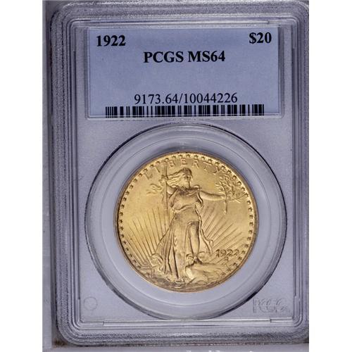 1922 $20 MS64 PCGS. Scarcely seen in the next grade, w 1922[$20] MS64 PCGS.