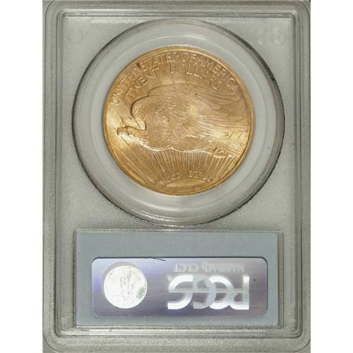 <B>1922 $20 MS64 PCGS.</B></I> The satiny, khaki surfaces exhibit intermingled splashes of sunset-orange color, especially on the upper reverse. Most of the design elements are well defined, except for Liberty's arms and hands. An interesting, unusual, curved die line is seen in the left obverse field.<BR><BR><b>Shipping:</b> Coins & Currency (<a target="_blank" href="http://www.heritageauctions.com/common/shipping.php">view shipping information</a>)