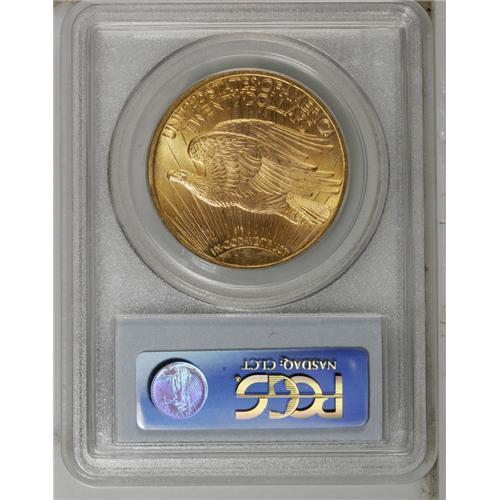1922 $20 MS64 PCGS. This yellow-gold near-Gem has hint