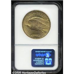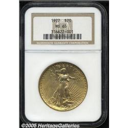 <B>1922 $20 MS65 NGC.</B></I> Boldly defined for this lesser seen P-mint Gem, with a pleasing, original appearance and just a few modest marks on the central devices. Only three finer examples of this variety have been certified by PCGS.
