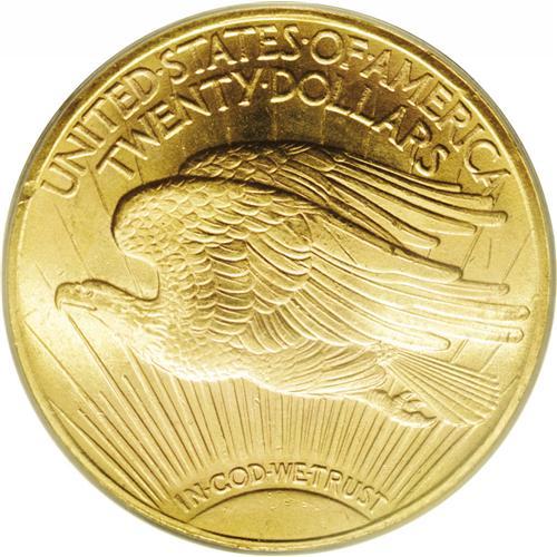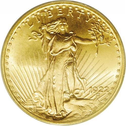 <B>1922<$20> MS65 PCGS.</B></I> A pleasing apricot-gold example that has a couple of noticeable marks on Liberty's legs. Otherwise, the fields and reverse are essentially mark-free and the devices are well defined.