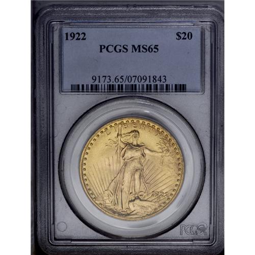 1922 $20 MS65 PCGS. Another Gem of this date, with med