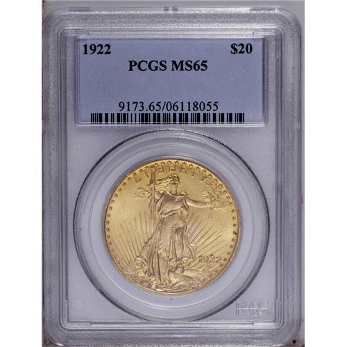 1922 $20 MS65 PCGS. This is a bright, highly lustrous 1922[$20] MS65 PCGS.