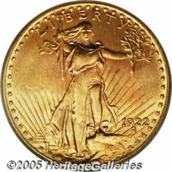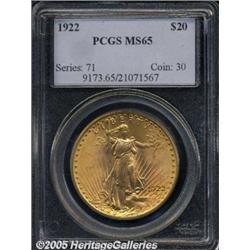 1922 $20 MS65 PCGS. Well struck and satiny, with