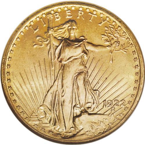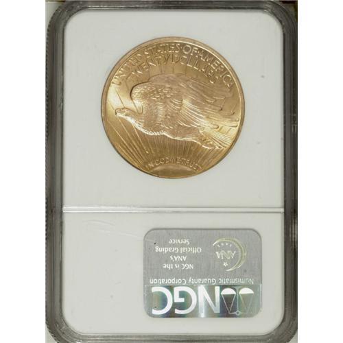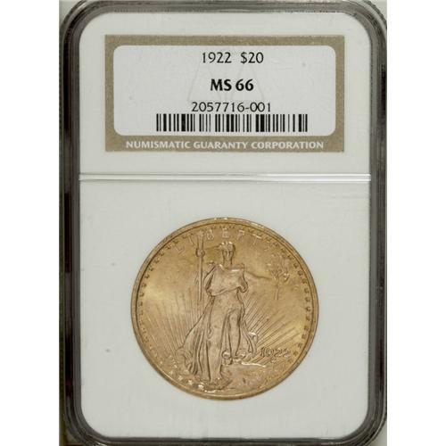 1922 $20 MS66 NGC. A bold striking with peerless, sati