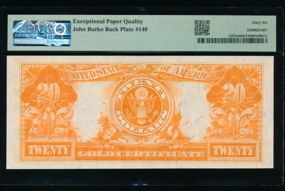 One 1922 $20 Mule Gold Certificate PMG 66EPQ.