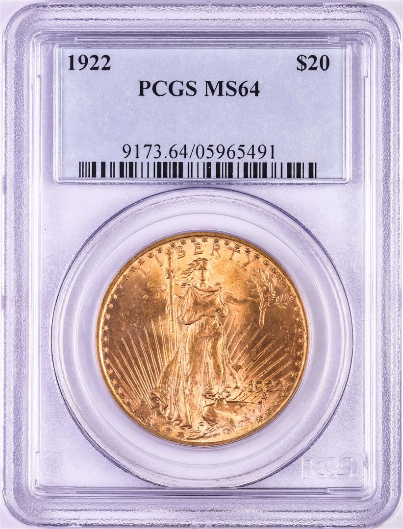 One 1922 $20 St. Gaudens Double Eagle Gold Coin PCGS MS64. PCGS Graded.