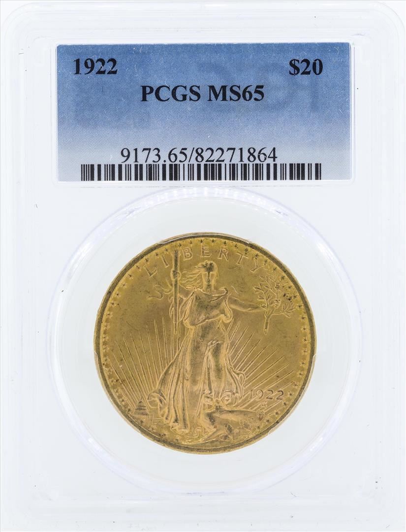 One 1922 $20 St. Gaudens Double Eagle Gold Coin PCGS MS65. PCGS Graded.