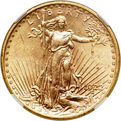 1922 $20 St. Gaudens. NGC graded MS-62. A few obverse bag marks. Frosty (PCGS # 9173).