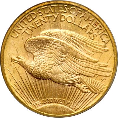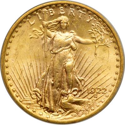 1922 $20 St. Gaudens. PCGS graded MS-63. Lightly toned, a frosty example (PCGS # 9173) .