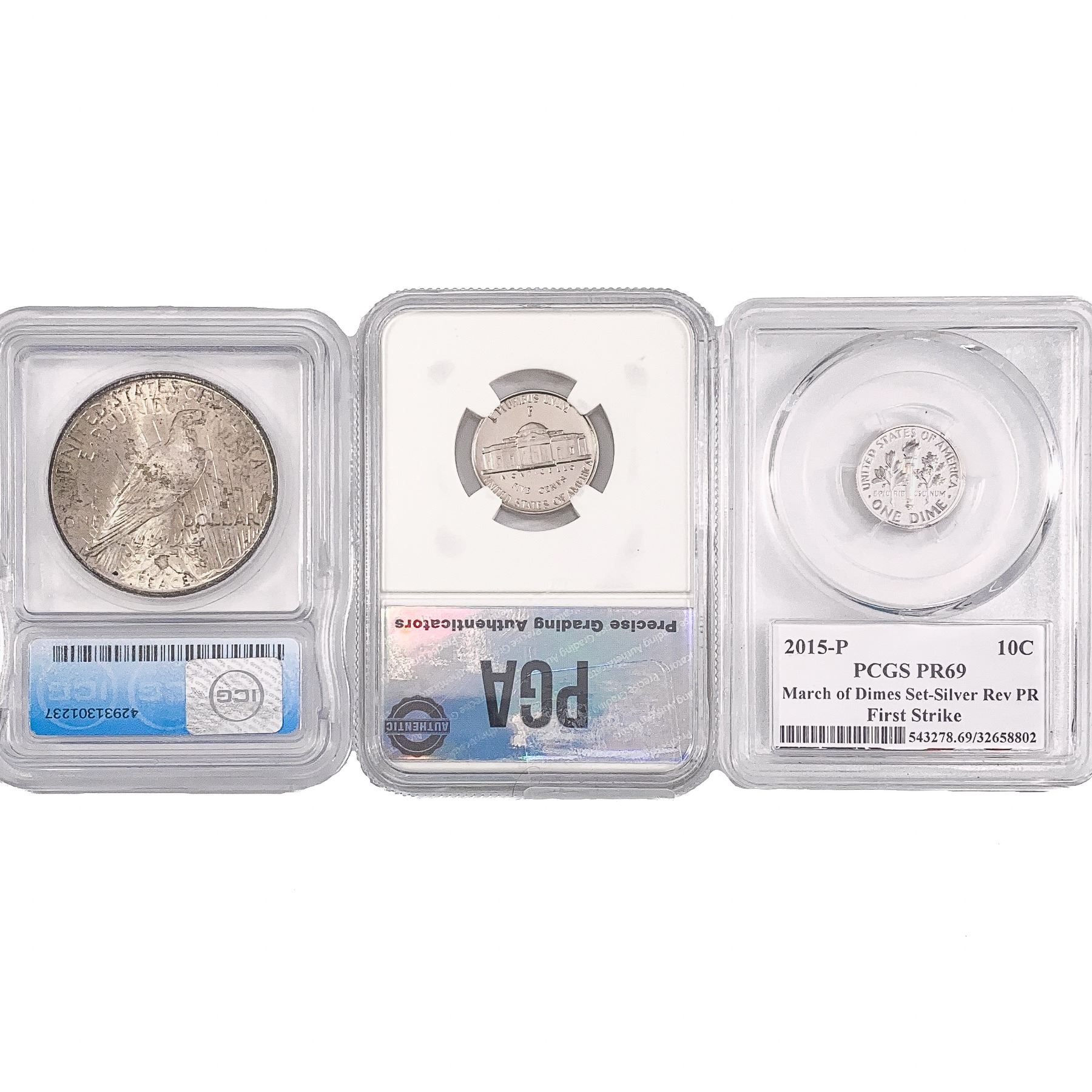 e. Coins sold referencing a third-party grading service are sold “AS IS” without any express or implied warranty, except for a guarantee by GSA that they are genuine. Removal or alteration of the holder, voids all of Bidder’s claims concerning that Product. Certain warranties may be available from the grading services and Bidders are referred to them for further details: Numismatic Guaranty Corporation (NGC), PO Box 4776, Sarasota, FL 34230, www.ngccoin.com/services/writtenguarantee.asp; Professional Coin Grading Services (PCGS), PO Box 9458, Newport Beach, CA 92658, www.pcgs.com/guarantee.html; ANACS, 6555 S. Kenton St., Ste. 303, Englewood, CO 80111; and Independent Coin Grading Co. (ICG), 7901 East Bellview, Ave., Suite 50, Englewood, CO 80111.