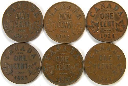 1922, 1923, 1924, 1925, 1930 and 1931, all of them VF or better