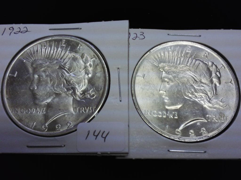 1922 & 23 PEACE SILVER DOLLARS (UNC)