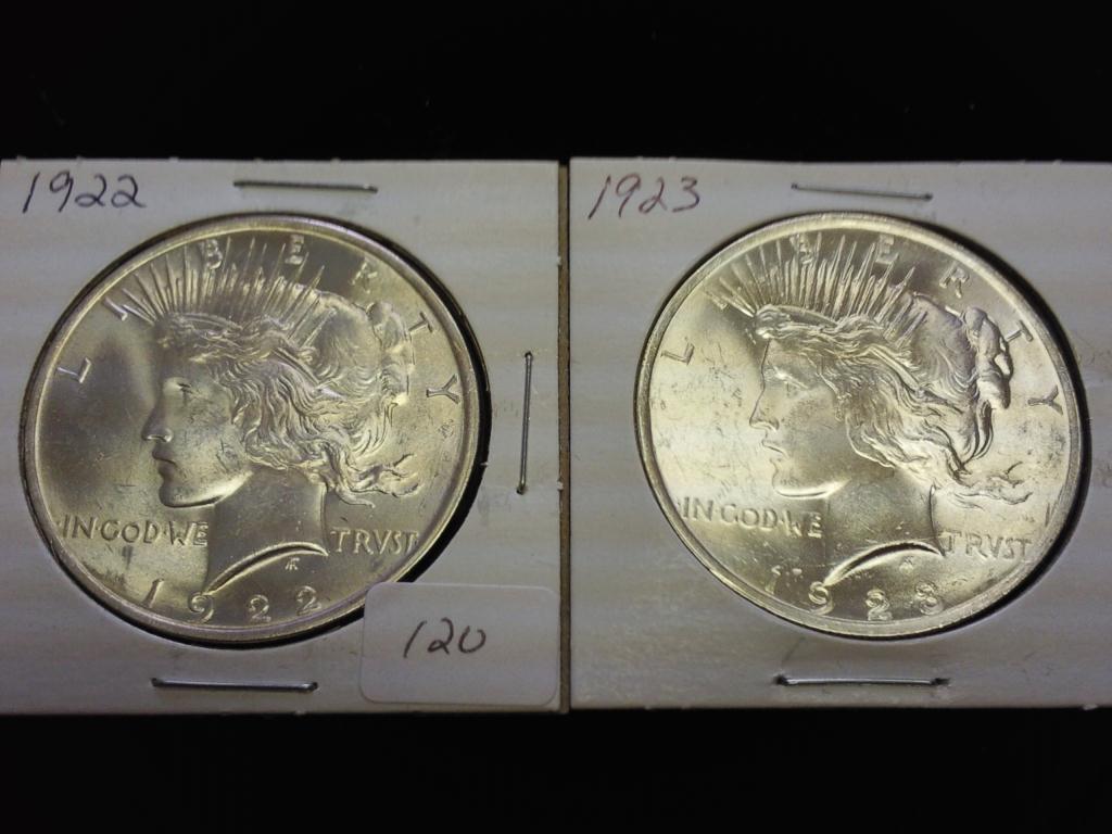 1922 & 23 PEACE SILVER DOLLARS (UNC)
