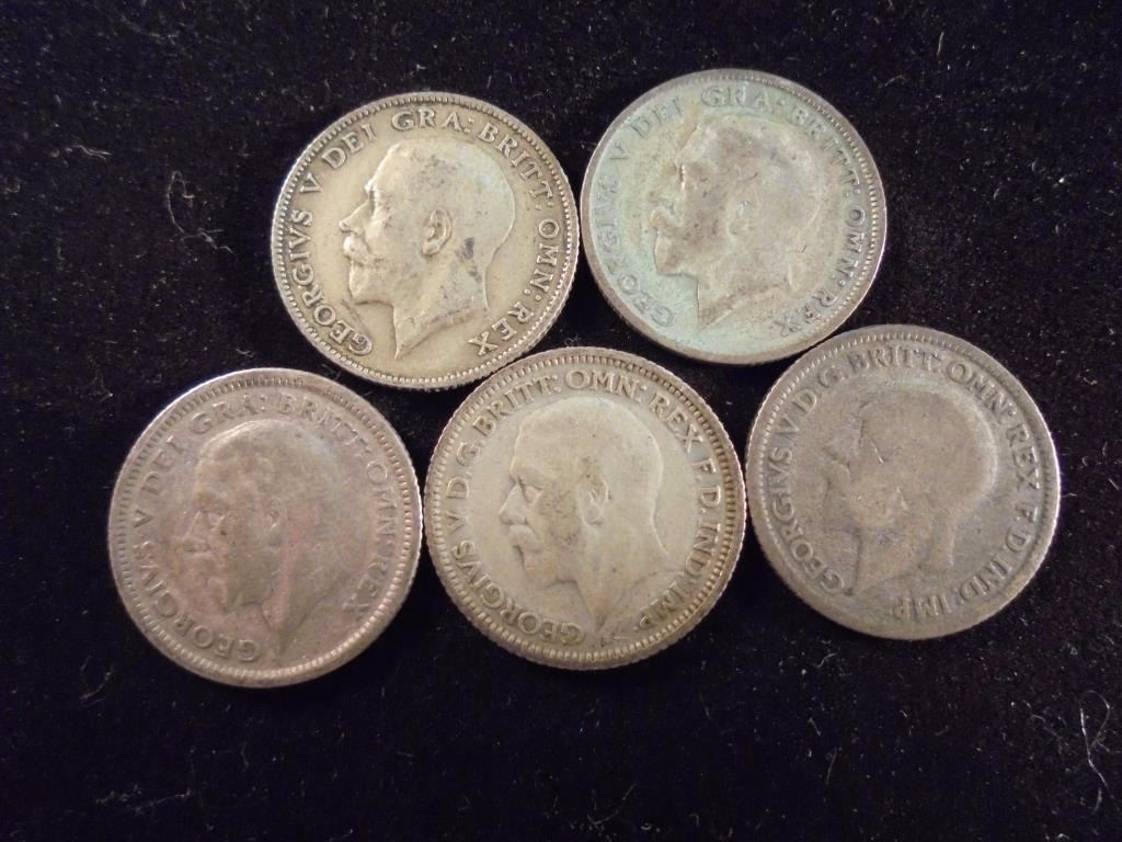 1922,24,26,28 & 29 GREAT BRITAIN SILVER 6 PENCE