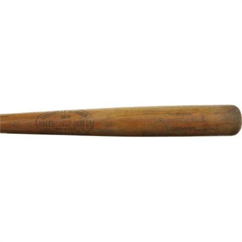 <B>1922-25 Babe Ruth Game Used Bat.</B></I> There's nothing quite like the thrill of holding a Babe Ruth bat in one's hands, and this is a scarce early example dating to the era of the New York Yankees' first World Championship season. The signature model Hillerich & Bradsby exhibits excellent use with a professionally repaired handle crack, suggesting that the Babe may have launched a few into the cheap seats with this historic lumber. Several ball marks are visible on the right and left barrel, with the latter showing evidence of spike marks as well. Though Ruth typically utilized bats measuring thirty-five or thirty-six inches in length, he is quoted in an article on batting that he did sometimes use shorter bats as well. At a length of thirty-four inches and weight of thirty-seven ounces, this specimen certainly falls within the acceptable range. With examples matching Ruth's most commonly used attributes routinely approaching and surpassing the $100,000 mark at auction, this specimen boasting slightly more modest dimensions becomes all the more attractive. A key artifact from the beginning of the New York Yankees reign as baseball's most noteworthy franchise. Graded GU5. <I>LOA from Taube & Malta.</B></I><BR><BR><b>Shipping:</b> Bats, Clubs, Sticks, Swords, Rif (<a target="_blank" href="http://www.heritageauctions.com/common/shipping.php">view shipping information</a>)