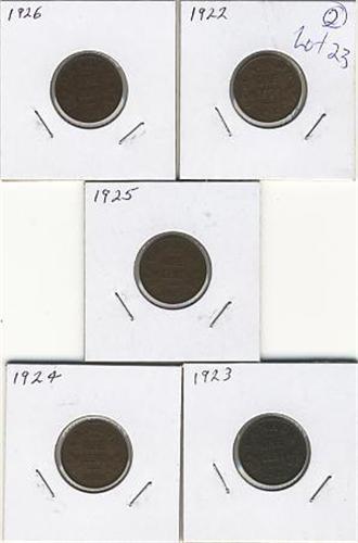 5 pieces, 1 each Geo.V key & semi-key dates in circulated Good grade (no return).