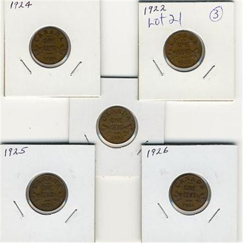 Geo.V series, key & semi-key dates. 1 each 1922 thru 1926 in average VG grade (no return).