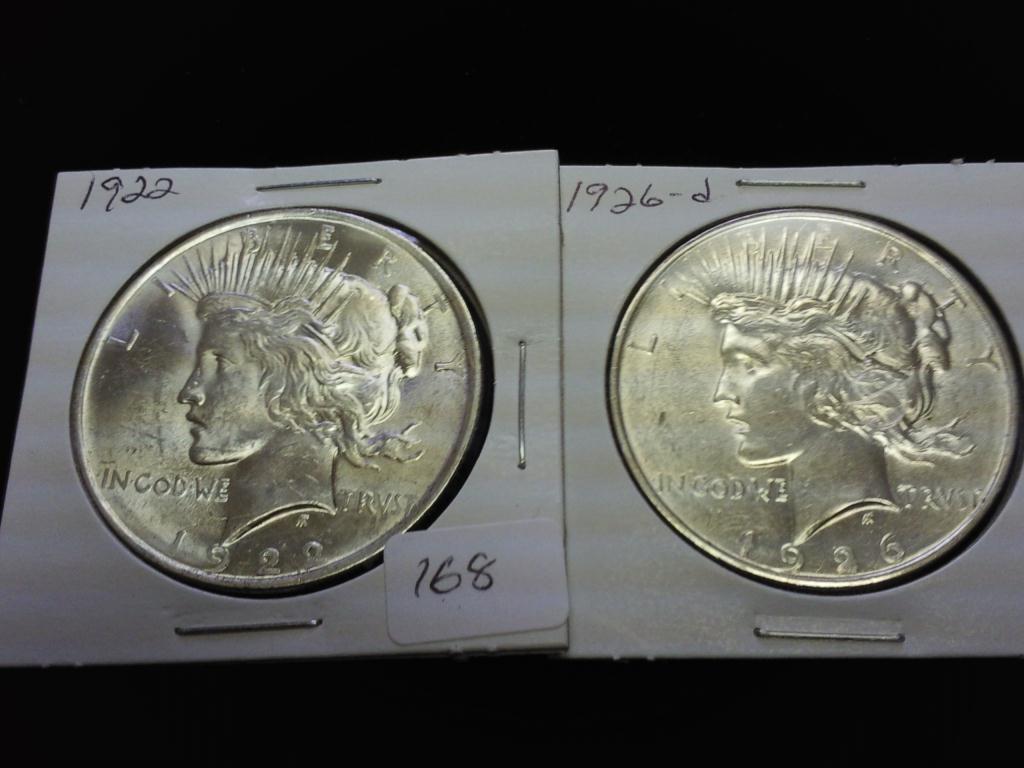 1922 & 26-D PEACE SILVER DOLLARS (UNC)
