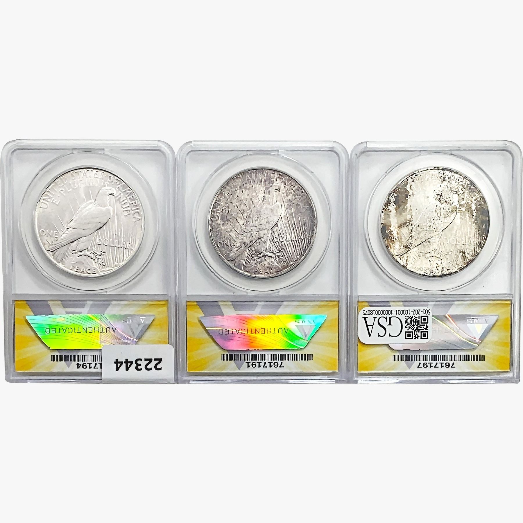 COINS AND CURRENCY LISTED IN GSA’S CATALOG AS GRADED AND ENCAPSULATED BY PCGS, NGC, ANACS, ICG, PCGS CURRENCY, PMG, PCGS BANKNOTE GRADING, CMC OR ANY OTHER THIRD-PARTY GRADING SERVICE ARE LIKEWISE SOLD “AS-IS” EXCEPT AS EXPRESSLY SET FORTH HEREIN. ALL THIRD-PARTY GRADING SERVICE GUARANTEES, INCLUDING AUTHENTICITY, ARE THE SOLE RESPONSIBILITY OF THE THIRD-PARTY GRADING SERVICE AND NOT WARRANTIES OR GUARANTEES OF GSA. BIDDERS SHOULD CONTACT THESE THIRD-PARTY GRADING SERVICES DIRECTLY WITH RESPECT TO ANY CLAIMS OR QUESTIONS THEY MAY HAVE CONCERNING THEIR GUARANTEES AND WARRANTIES. BIDDERS ACKNOWLEDGE AND AGREE THAT AUCTIONEER IS NOT BOUND BY OR LIABLE FOR ANY OPINION OR CERTIFICATION BY ANY THIRD-PARTY GRADING SERVICE. REMOVAL OF A PRODUCT FROM ITS PROTECTIVE CASING OR HOLDER OR ALTERATION OF ANY COIN HOLDER WAIVES ALL RIGHTS CONCERNING THE PRODUCT CONTAINED THEREIN.