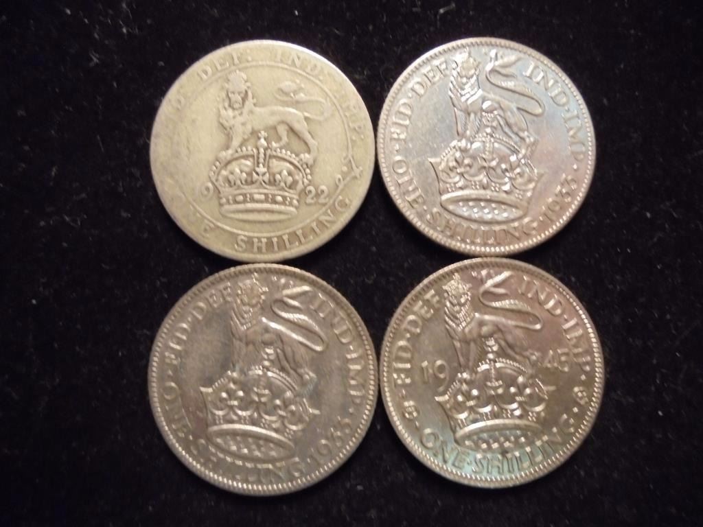 1922,33,33 & 1945 GREAT BRITAIN SILVER SHILLINGS