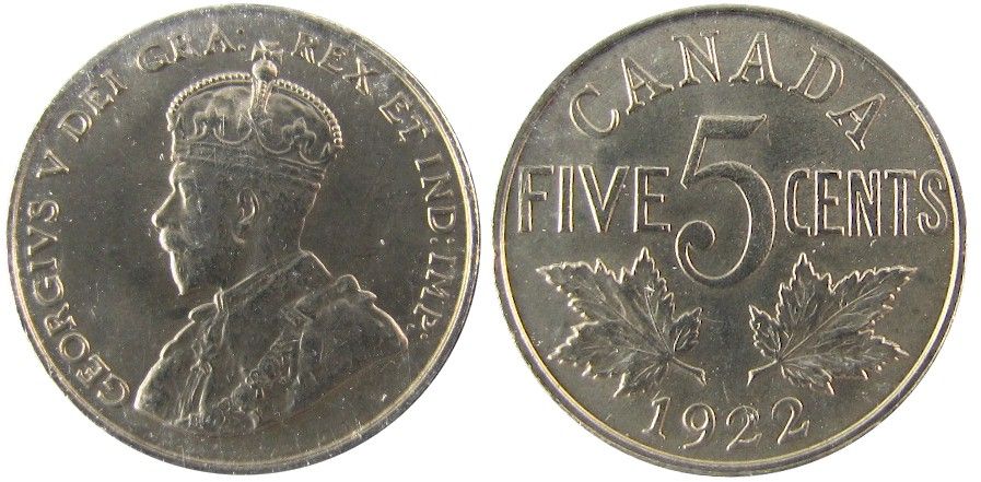 1922 5¢ ICCS MS65. Strong strike with 8 full beads. Great lustre.